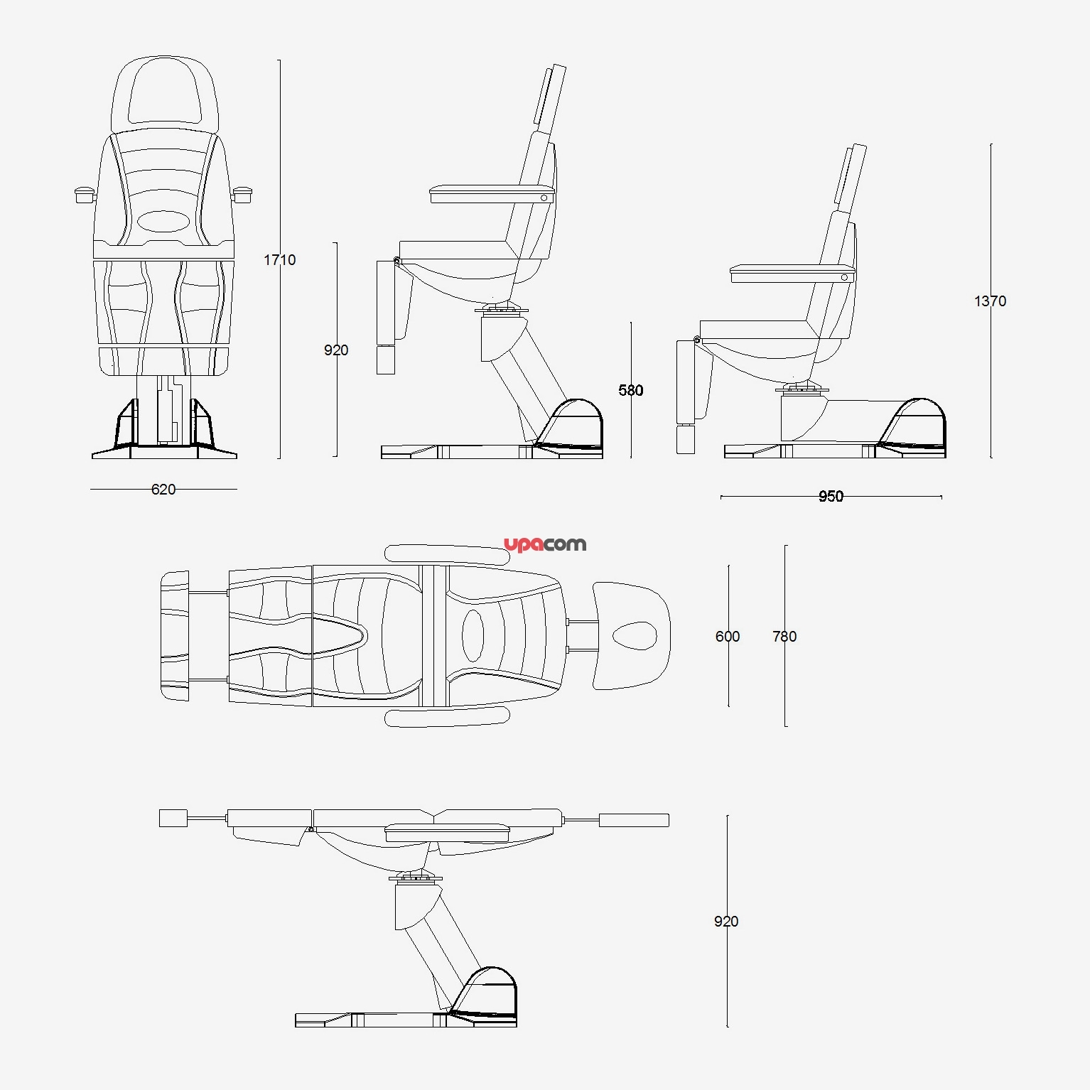 Косметологическое кресло Сигма 4.0 оснащено четырьмя независимыми электромоторами для подъема-опускания сидения и спинки, изменения угла наклона сидения и подъем ножной части.