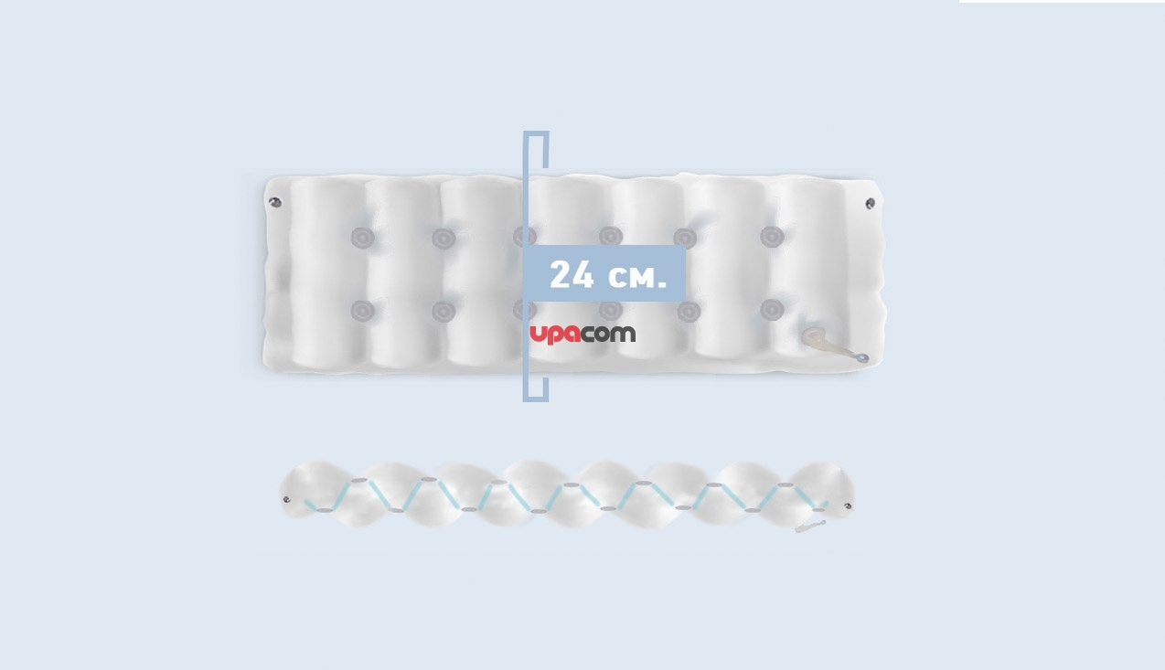 Высота баллонов 24 см. и внутренняя конструкция ячейки даёт возможность за счёт регулировки значительно снизить давление на поверхность тела человека